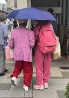 「どこ行くの」(パー子)「渋谷」(ペー)と昼間から大声で騒いでいるピンクのお二人です。