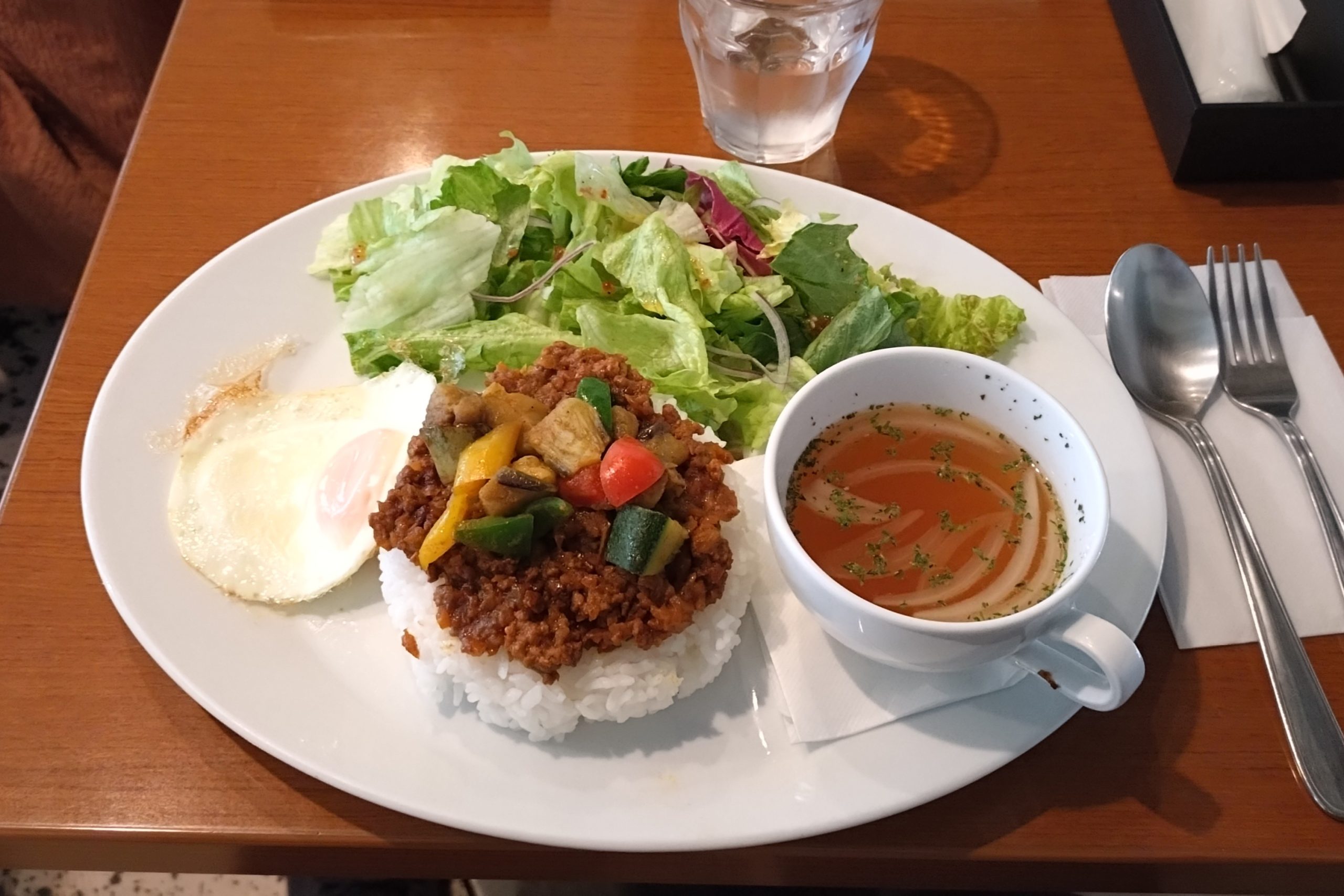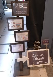 松屋方面に向かう古いビルの4階にあるカフェです。