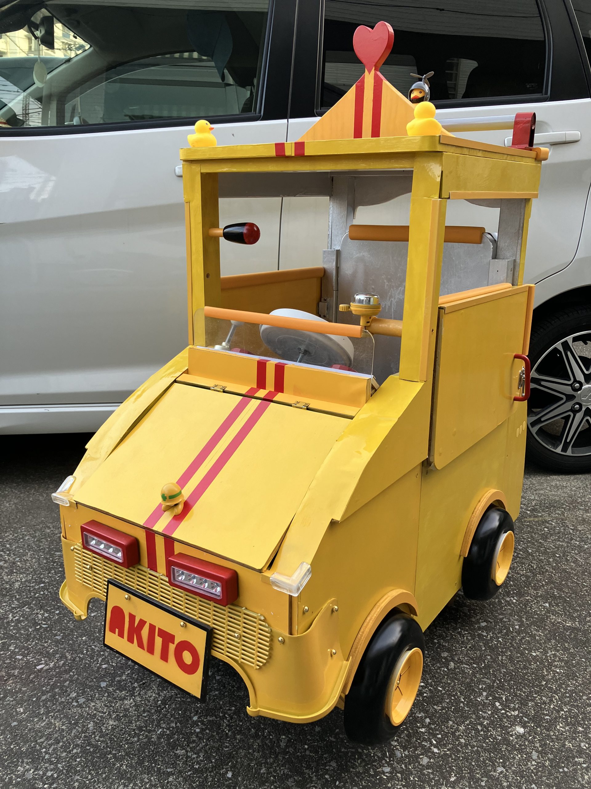 構想時当初は、オープンカースタイルにしようと考えていましたが、より車の感じを出すためと思い2ドアセダン風にしました。