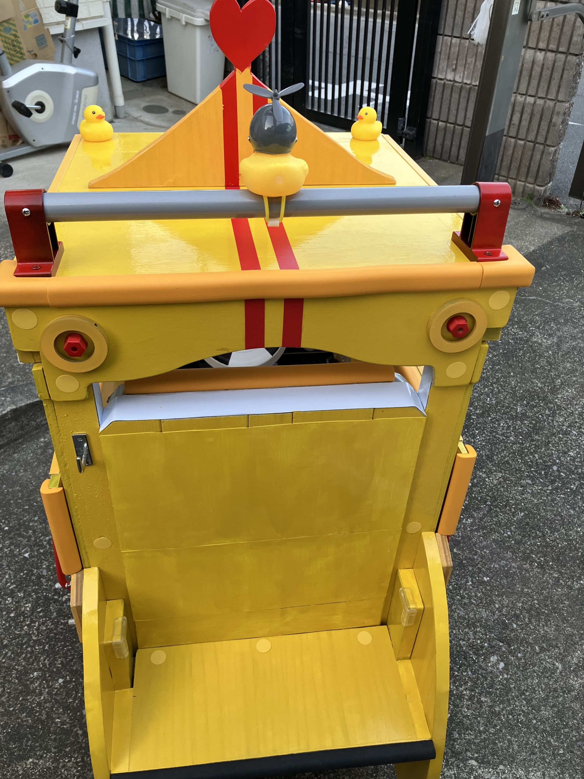 あとは、2人目の孫(男児)が夏頃に誕生するようなので、後ろに立って乗れるスペースを設けて、お兄ちゃんが立ち乗りして、弟くんが運転席に乗れる構造にしています。